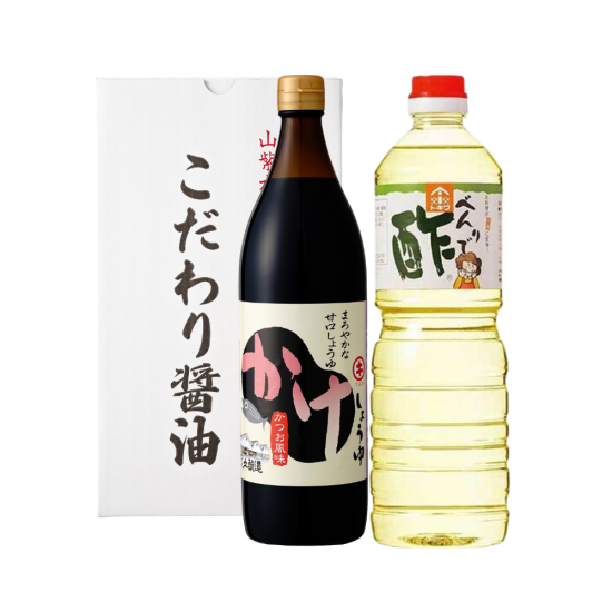 【かけしょうゆ】…しょうゆ(本醸造)、たん白加水分解物、かつお節エキス、果糖ぶどう糖液糖、本みりん、発酵調味料、酵母エキス/アルコール、甘味料(ステビア)、調味料(アミノ酸等)(原材料に一部に小麦、大豆を含む)